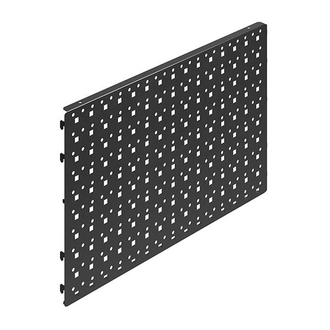 Панель оснащена квадратной перфорацией 10×10 мм с шагом 38 мм, что позволяет установить большое количество держателей для гаечных ключей, отвёрток, сверл, торцевых головок и полок различного размера.